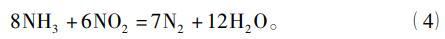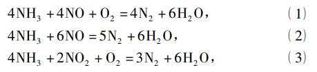 燃煤電廠SCR脫硝反應器中,NH3選擇性催化還原煙氣中NOx的主要化學反應為:
