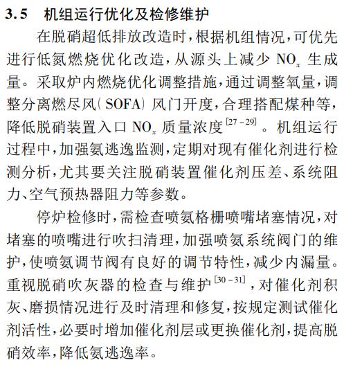 (3)做好噴氨優化調整,實現噴氨量與煙氣中NOx分布相匹配,加強對噴氨噴嘴、供氨調節閥等設備的檢修維護,防止出現局部過量噴氨。