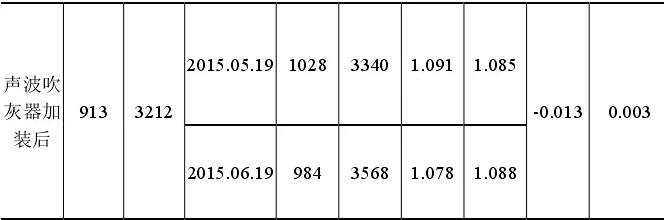由表格數據可得出:空預器安裝投用聲波吹灰器后,空預器煙氣壓差基本處于穩定狀態;而投用前差壓呈明顯增長趨勢。
