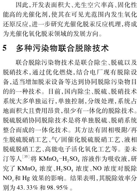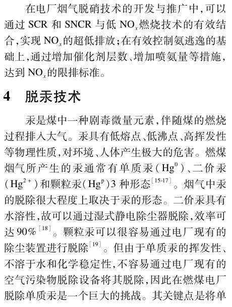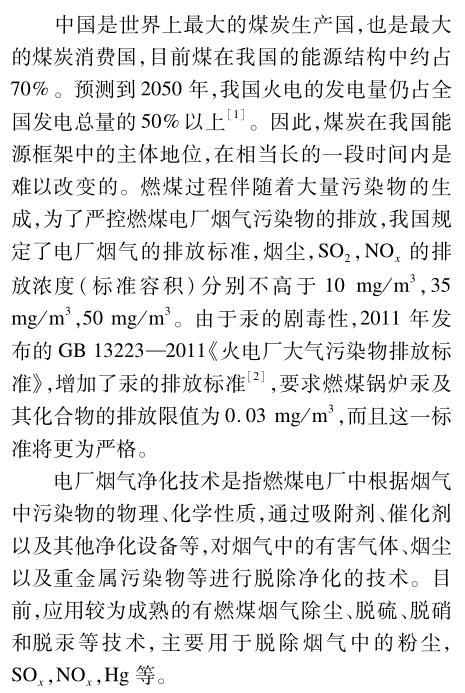 煙氣除塵技術由靜電除塵、袋式除塵,發展到電袋復合除塵。煙氣脫硫有干法、半干法、濕法等多種技術,但目前應用最廣的仍是石灰石-石膏濕法。電廠煙氣脫硝主要采用選擇性催化還原技術,其關鍵在于低負荷、全負荷煙氣脫硝催化劑的開發以及催化劑的再生。活性炭噴射是煙氣脫汞較為成熟的技術,但其成本高昂,并影響飛灰的綜合利用,近年來,催化煙氣脫汞技術得到了發展,并取得了一系列成果。多種污染物聯合脫除技術可減少單種污染物各自脫除的運行成本,已成為發展趨勢。