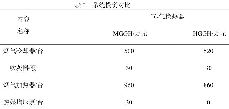通過以上對比可以看出,同樣性能下,HGGH系統要比 MGGH 系統簡單的多,整個投資費用相對較少,關鍵在額外的電能以及輔助蒸汽上,HGGH 系統的節能效果要明顯的多。