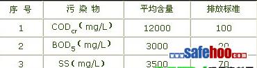 本次處理工程是重慶田野實(shí)業(yè)的的生產(chǎn)廢水處理工程,設(shè)計(jì)處理能力為:1000m3/d,其污染物的含量和控制標(biāo)準(zhǔn)見表1。