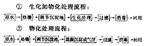 根據原水水質及處理后水質要求,初步選定物化處理及生化加物化處理兩種工藝流程進行比較,具體流程如下: