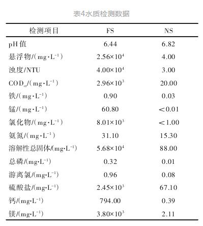 試運行期間對廢水來料箱中廢水原水取樣(FS)和凝結水泵出口凝結水取樣(NS),檢測數據結果見表4。