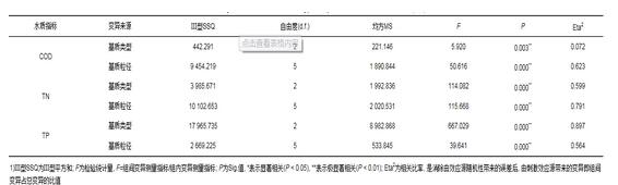 表2基質(zhì)類型和基質(zhì)粒徑對COD、TN、TP去除影響的統(tǒng)計分析1)