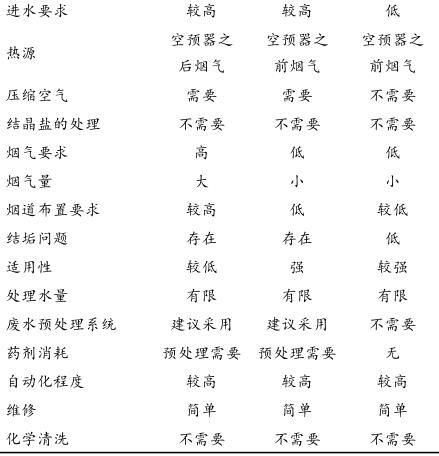 表 1 脫硫廢水煙氣蒸發處理技術比較分析表