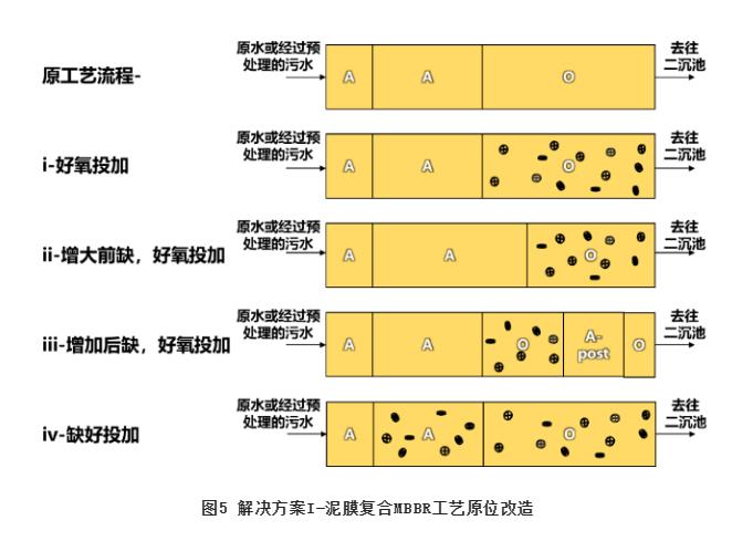 2.1 解決方案I-泥膜復合MBBR工藝原池改造