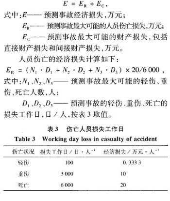 事故因果連鎖理論說明了事故的客觀規律(必然性),但事故的發生與發展及后果具有很大的不確定性(隨機性)。由事故的經濟損失預測分析,確定危險源的等級。預測事故經濟損失的計算公式: