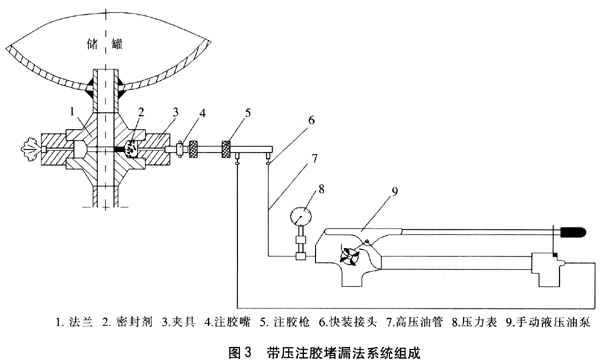 ??? ③ 帶壓注膠法就是利用泄漏部位的外表面與夾具構成的密封空間,用專用工具注入密封劑,從而達到堵漏的目的。需根據廠站管道的實際情況,對于重點防范部位應預制專用夾具備用。