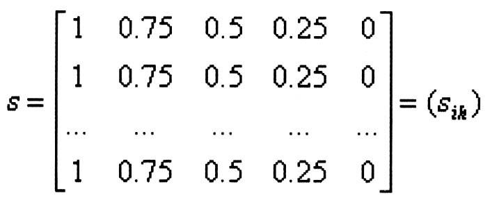 ??? 矩陣μ3當中4個行向量分別是“綜合安全管理”下的4個子指標對模糊概念“安全”的各級相對隸屬度,其相應的權重矩陣為: