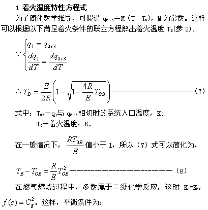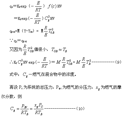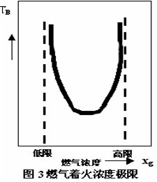 ??? 由圖3可見:當(dāng)燃?xì)庠诨旌衔镏械臐舛冗^(guò)高(高于高限),TB值為無(wú)限大,無(wú)法達(dá)到TB,表示混合物不能著火,相反當(dāng)燃?xì)鉂舛冗^(guò)低時(shí),也不能著火。當(dāng)燃?xì)鉂舛鹊蜁r(shí),表示燃?xì)馊紵a(chǎn)生的熱量無(wú)法把混合物加熱到著火溫度TB,所以也不能著火。當(dāng)燃?xì)鉂舛冗^(guò)大時(shí),表示空氣不足,只有很少的燃?xì)饪梢缘玫娇諝馊紵a(chǎn)生熱量。這時(shí)得不到空氣的燃?xì)獠坏荒苋紵a(chǎn)生熱量并且還會(huì)和惰性氣體那樣吸收熱量,使產(chǎn)生的熱量永遠(yuǎn)小于散熱,于是也不能著火。這就是燃?xì)膺^(guò)多也不能燃燒的原因。