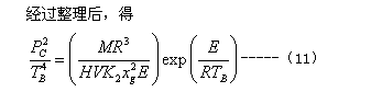 ??? 當(dāng)M、H、V、K2及E為已知值時(shí),根據(jù)式(11)可畫出Pc與TB的關(guān)系曲線,見圖2。