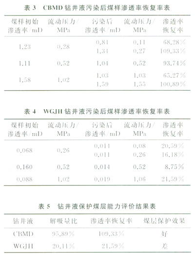 1)基于煤層氣產(chǎn)出及損害機(jī)理,提出了鉆井液損害煤層評價方法。方法采用解吸量比和滲透率恢復(fù)率作為評價鉆井液損害及保護(hù)煤層效果的兩個參數(shù)。