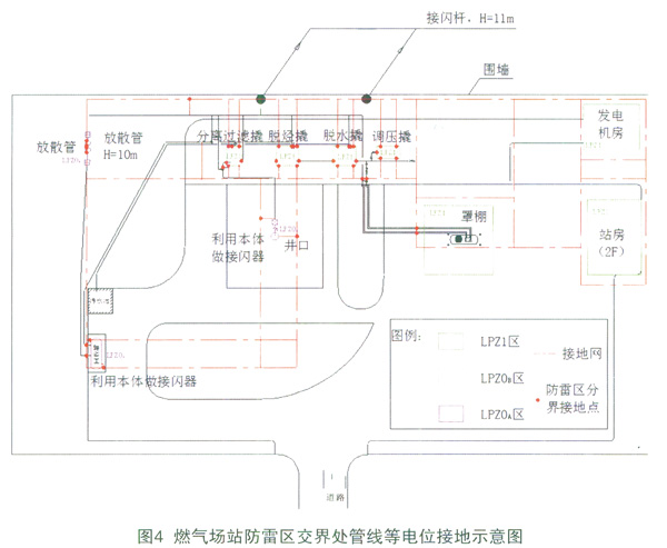 城鎮燃氣場站及其附屬設施的金屬管線宜采用鎧裝電纜,當無法達到要求時,宜采取金屬管線屏蔽等措施處理。電纜屏蔽層除在兩端接地外,在穿越防雷區LPZ0B和LPZ1區交界時也應將屏蔽層做接地處理,線路較長時,屏蔽層宜多次接地。