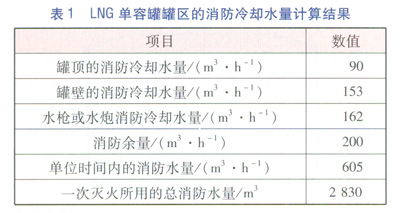 該LNG單容罐罐區(qū)的消防冷卻水量計(jì)算結(jié)果見表1。