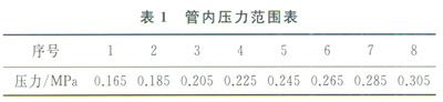 實驗所用管道為不銹鋼材質,內徑50mm,壁厚3.5mm,壓力的選取主要依據《城鎮燃氣設計規范》(GB 50028—2006),結合減壓閥的工作特性,確定本實驗的管道壓力范圍,如表1所示。