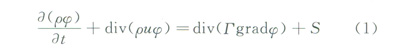 從左至右,方程中各項依次為瞬態項、對流項、擴散項、源項。j是通用變量;G是廣義擴散系數;S是廣義源項。對于特定的方程,j、G、S具有特定的形式。此外,控制方程組還應包括附加的湍流輸運方程。u是速度失量。