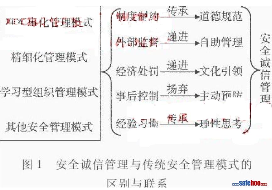 ????安全誠信管理與傳統(tǒng)安全管理模式的區(qū)別與聯(lián)系如圖1所示。