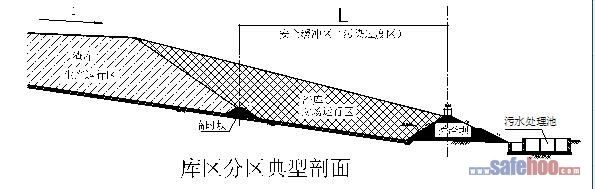 第二套排水系統(tǒng)為庫內(nèi)排水(污水)系統(tǒng)。將庫區(qū)截洪溝內(nèi)、直接落在庫面上受污染的地表降水,首先收集在安全緩沖區(qū)(污染過度區(qū))內(nèi),沉淀后排向下游污水處理池,經(jīng)處理達(dá)標(biāo)后排放。