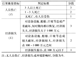 ????3.3 水運工程重大危險源(工序)事故發生的后果與可能性的衡量指標