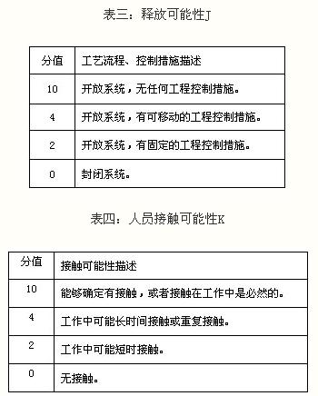 L——危害發生的可能性。危害發生的可能性與危害因素的數量H、傳播性I、釋放性J及接觸可能性K等因素相關,根據經驗,H、I、J、K對危害發生可能性的關聯度不同,因此依其關聯度大小賦予它們不同的權重,分別為1、2、3、4。危害發生的可能性L取值為H、I、J、K的加權平均數,算式為L=(1H+2I+3J+4K)/10