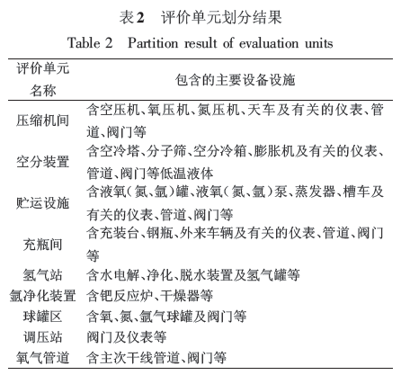 將制氧企業(yè)視為一個(gè)系統(tǒng),劃分為主體生產(chǎn)系統(tǒng)和輔助生產(chǎn)系統(tǒng)兩大部分,為了便于系統(tǒng)危害辨識(shí)、評(píng)價(jià)工作的進(jìn)行,將主體生產(chǎn)系統(tǒng)劃分為若干評(píng)價(jià)單元,將輔助生產(chǎn)系統(tǒng)劃分為若干子系統(tǒng)。