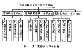 熟練駕駛員雖然不了解道路的設計,但他們通常有多年開車的經驗,對路、車、交通標志和路邊環境有很好的感覺,能通過經驗和直觀感官發現問題。通過他們駕駛模擬器,感受設計道路的宜人性和安全性,可以有效指出設計不如意的地方。對此類人群通常可采用多層次灰色綜合評價法,以三層為例(圖I),介紹一下其基本思路: