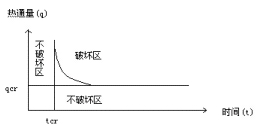 熱通量-時(shí)間準(zhǔn)則以熱通量和時(shí)間作為衡量目標(biāo)是否被破壞的參數(shù)。如果以熱通量q和作用時(shí)間t分別作為縱、橫坐標(biāo),那么目標(biāo)破壞的臨界條件對(duì)應(yīng)于一條臨界曲線,見圖2。