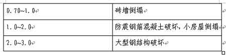 沖擊波的破壞作用可用三個(gè)特征量來衡量,即波陣面上的壓力、沖擊波的持續(xù)時(shí)間和比沖量(壓力與時(shí)間的乘積)。在沖擊波陣面后出現(xiàn)的高溫和高壓是殺傷和破壞的主要因素。在其他條件相同的情況下,爆炸能量越大,沖擊波強(qiáng)度越大,波陣面上的超壓也越大。當(dāng)沖擊波在空間自由傳播時(shí),波的強(qiáng)度隨著傳播距離的增加而逐漸衰減。這是由于沖擊波以球面的形狀向外擴(kuò)展,波陣面的表面積不斷增大,壓縮區(qū)的空氣量也不斷增多,因而波陣面單位面積上的能量及單位質(zhì)量空氣的能量會(huì)逐漸減小,加上傳播過程中阻力作用,使波的強(qiáng)度迅速減弱。因而在相同的爆炸條件下,距離爆炸中心越近,沖擊波波陣面上超壓越大,其破壞作用也越大。下表為1000kgTNT在地面爆炸時(shí)沖擊波超波破壞作用與距離關(guān)系的實(shí)驗(yàn)結(jié)果。