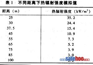 ??? 采用池火災傷害數學模型分析法進—步確定影響程度,被評價的汽油罐區防火堤長105m、寬32m、高約1.2m。罐體一旦破裂或操作失誤外溢,液體將立即沿著地面擴散,將一直流到防火堤邊,形成液池。遇明火將形成池火。