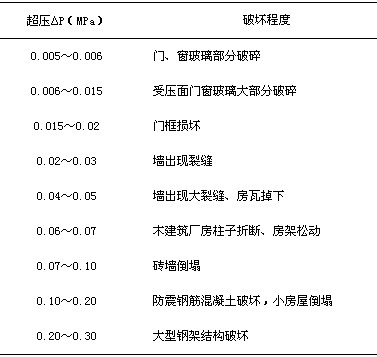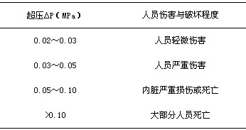 蒸氣云爆炸波超壓對人體的傷害程度可見表2,對建筑物的破壞作用見表3。