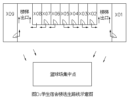 2)? 每層樓的學(xué)生在老師的指揮下按照《逃生預(yù)案》之四圖D規(guī)定的線路有序地撤離走廊下樓梯。
