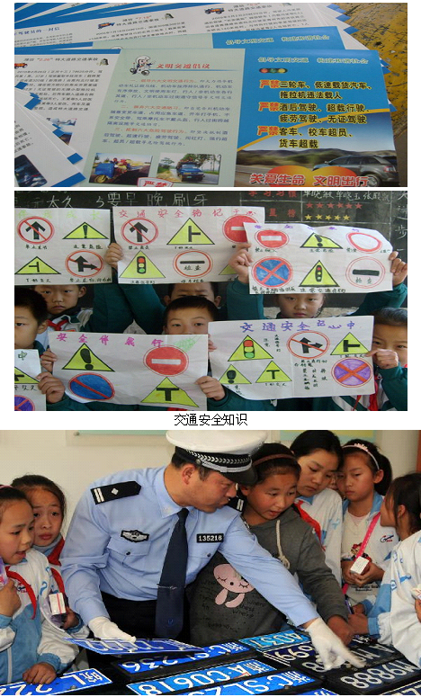 一名交警正在向小學生們介紹如何識別機動車假牌