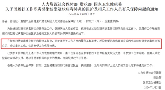 2020 年1 月 23 日,人社部及國家衛健委聯合發了一則通知: