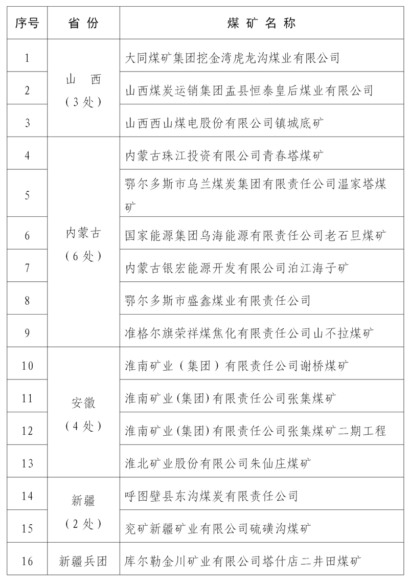 按照《煤礦安全生產標準化管理體系考核定級辦法(試行)》和《煤礦安全生產標準化管理體系基本要求及評分方法(試行)》(煤安監行管〔2020〕16號)的有關規定,經資料審查和現場檢查考核,現有16處煤礦達到安全生產標準化管理體系一級標準,現予以公示,接受社會監督。公示期間,如發現申報煤礦存在瞞報事故、弄虛作假等違法違規行為的,將依規定取消其申報資格。