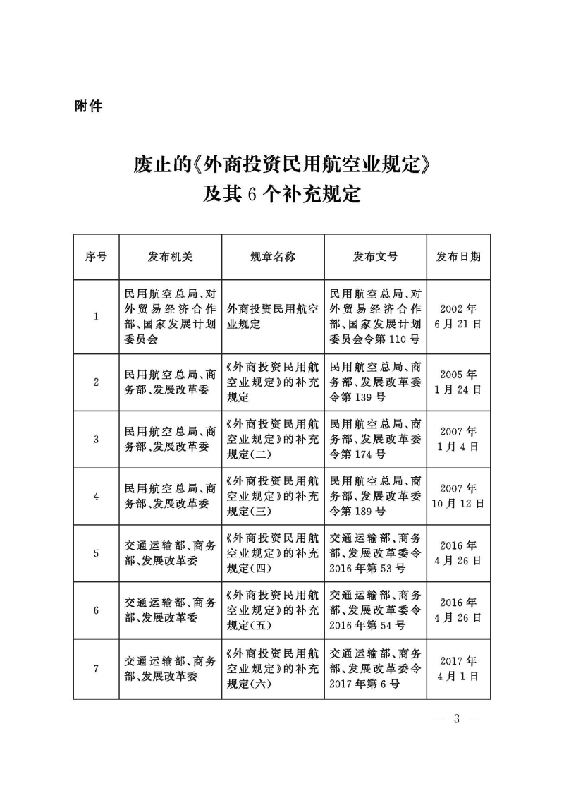 交通運輸部 商務部 發展改革委關于廢止《外商投資民用航空業規定》及其6個補充規定的決定