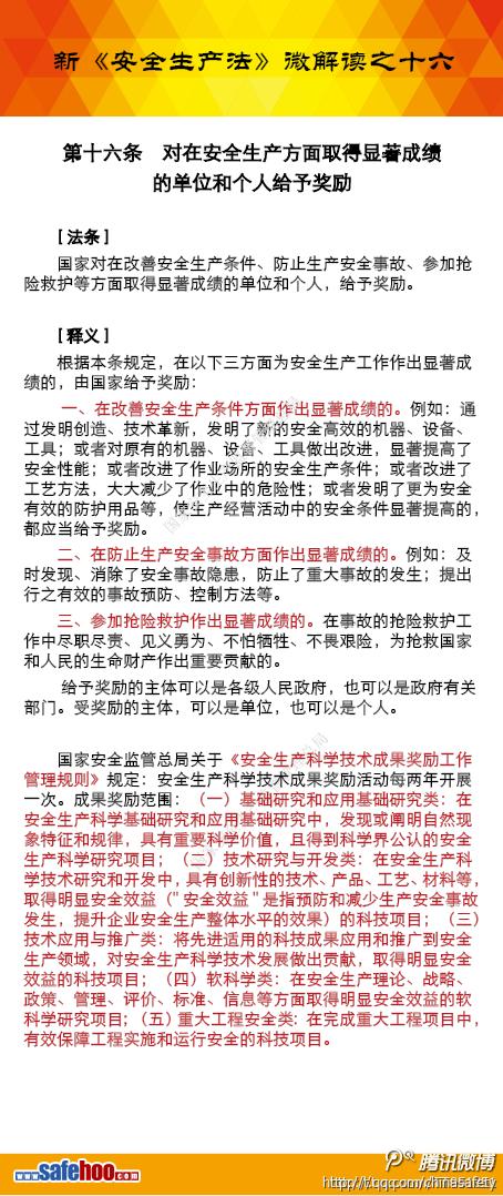 新《安全生產法》微解讀——第十六條 對在安全生產方面取得顯著成績的單位和個人給予獎勵