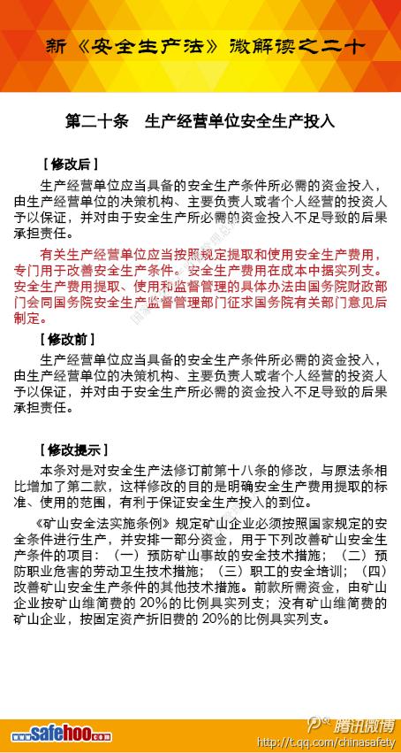 新《安全生產法》微解讀——第二十條 生產經營單位安全生產投入