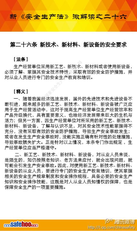 新《安全生產法》微解讀——第二十六條 新技術、新材料、新設備的安全要求