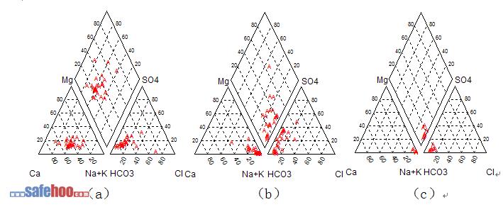 圖1 興隆莊礦上組煤主要充水含水層水質Piper三線圖