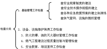 燃氣行業安全全生檢查工作分類見下表,總體可分為五大類: