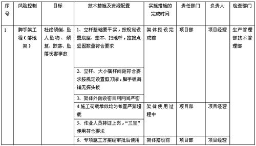 經過危險源的辨識、評價,明白了重大危險源的分布區域和存在范圍。最后要根據評價出的重大危險源將其以清單方式列明,用編制方案的形式,制定出具有針對性地措施,在施工生產過程中的各個環節,嚴格進行監督檢查,下面以腳手架傷害為例編制重大危險源管理方案表6。