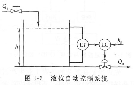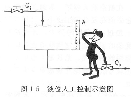 如圖1—5所示為液體貯罐內液位的人工控制示意圖。從維持生產平穩考慮,工藝上希望罐內的液位九能維持在所希望的位置hs。上。液位h是需要控制的工藝變量,稱為被控變量。顯然,當進液量Qi或出液量Qo波動時,都會使罐內的液位發生變化。現假定通過控制出液量Qo維持液位的恒定,稱Qo為操縱變量。進液量Q是造成被控變量產生不期望波動的原因,稱為擾動。