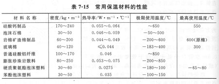 常用保溫材料的性能見表7—15。