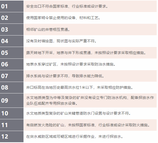 金屬非金屬地下礦山重大生產安全事故隱患24項中的1-12項。