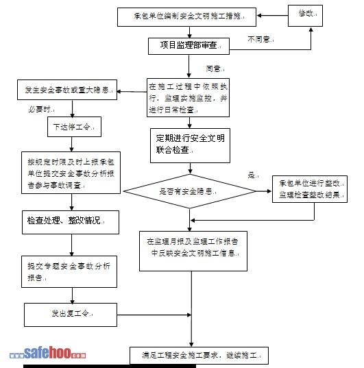 4.1.3 督察施工單位健全安全保證體系并切實搞好自控,安全人員必須到位,定期檢查施工單位的運作情況,加強日常安全檢查。