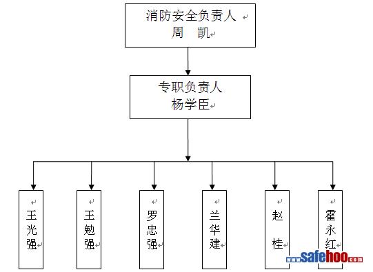 1.2 項目經理為項目第一級消防責任人,負責消防組織機構的建立和消防工作的組織及安排。消防安全組具體承擔相關的日常事務工作,并負責有關消防法的貫徹,定期組織消防安全檢查及消防演習。