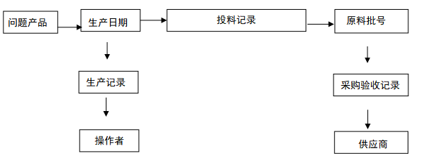 當(dāng)檢驗(yàn)或銷售的產(chǎn)品出現(xiàn)質(zhì)量問題時(shí)追溯路徑為: