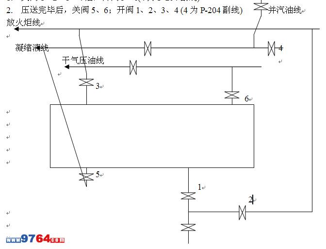 1. 關(guān)閥1、2、3、4后,開閥5、6(4為P-204副線)