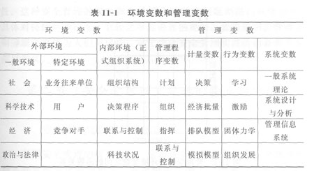 權變理論中的環境變數和管理變數的具體內容見表11—1。
